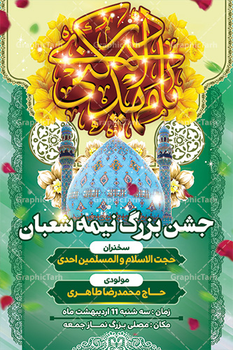 - همچنین می توان با تغییر سایز بنر اطلاعیه جشن نیمه شعبان را به عنوان پوستر نیمه شعبان چاپ کرد.