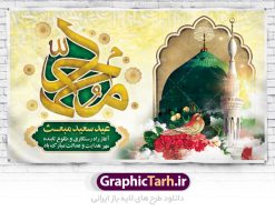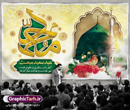 - بنر تبریک عید مبعث در ابعاد 3 در 4 متر و به صورت عمودی آماده شده است که از سایت گرافیک طرح قابل دانلود می باشد.