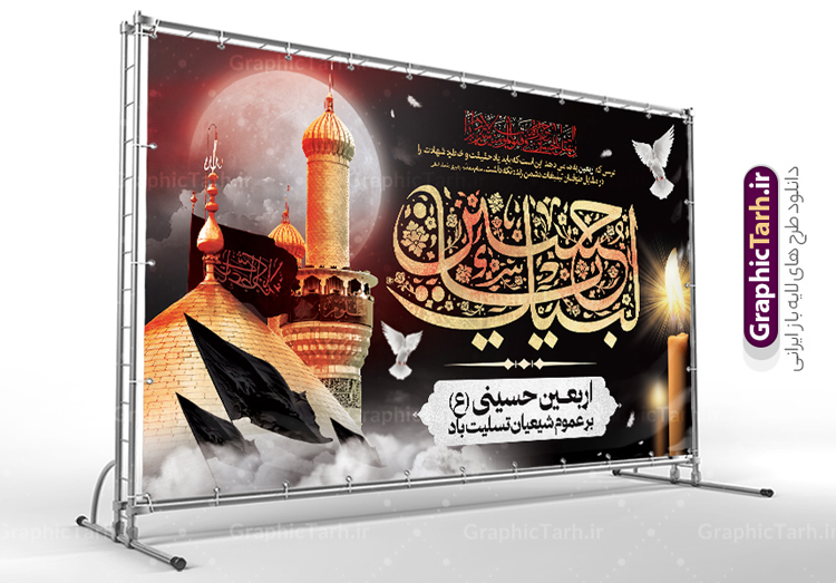- فایل طرح بنر جایگاه اربعین حسینی در ابعاد لارج 5 در 3 متر و با رزولوشن 72 مناسب نصب مراسم عزاداری ، از سایت گرافیک طرح قابل دانلود می باشد.