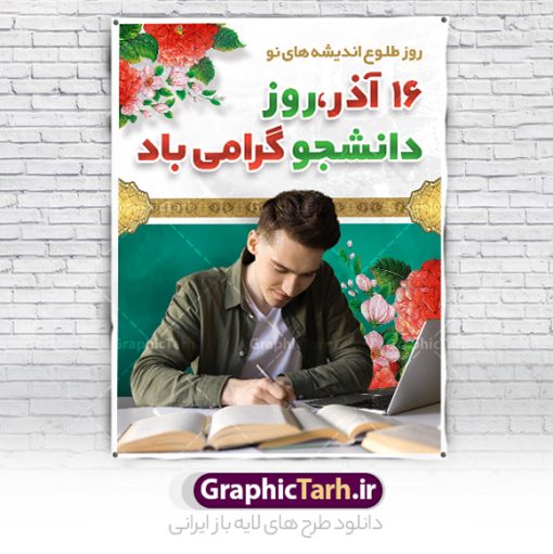 دانلود طرح لایه باز بنر تبریک روز دانشجو و طراحی پوستر گرامیداشت مراسم 16 آذر