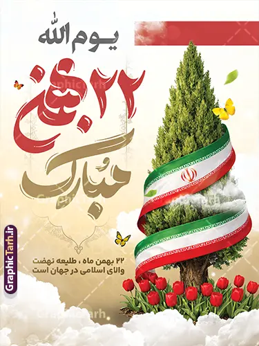 - طرح پوستر 22 بهمن و دهه فجر قابل ویرایش با فرمت PSD در نرم افزار فتوشاپ با قابلیت تغییر سایز