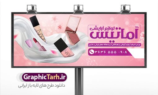 دانلود طرح لایه باز بنر سردر گالری لوازم آرایشی و بهداشتی و تابلو فروشگاه لوازم آرایش قابل ویرایش با عکس لوازم آرایش