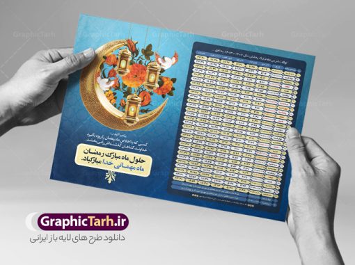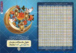دانلود طرح لایه باز تراکت جدول انتباه اوقات شرعی ماه مبارک رمضان سال 1403 فرمت psd