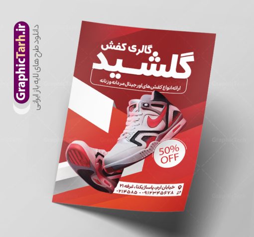 فایل لایه باز تراکت تبلیغاتی فروشگاه کفش psd و قابل ویرایش