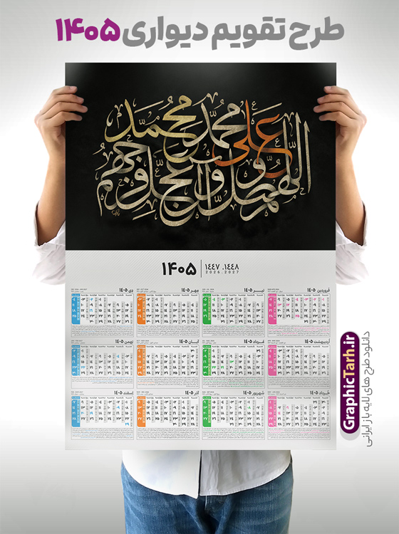 تقویم دیواری سال 1405 مذهبی و با تایپوگرافی صلوات