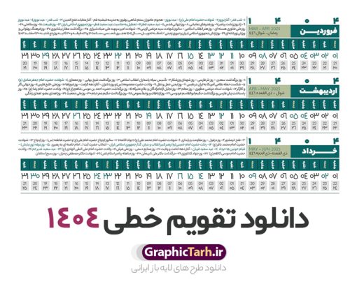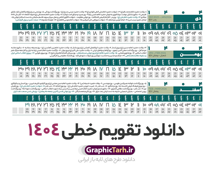 - فایل تقویم خام سال 1404 هجری شمسی مناسب برای استفاده در تقویم دیواری و تقویم رومیزی سال 1404 و … می باشد.