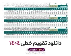طرح جدول تقویم خطی سال 1404 لایه باز و با قابلیت ویرایش
