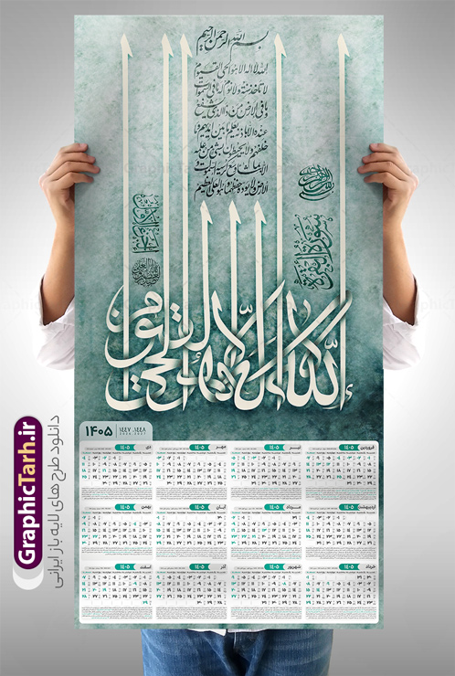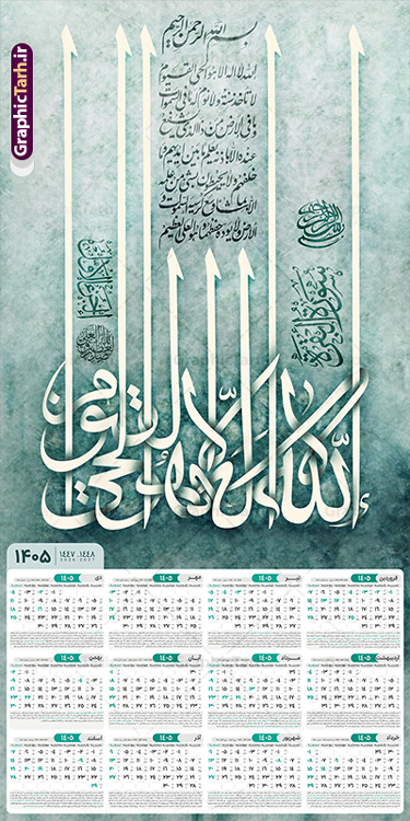 - این طرح دارای تصویر آیه شریفه آیت الکرسی و جدول تقویم لایه باز سال 1405 است.