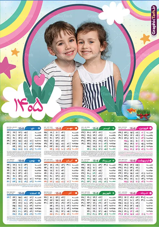 دانلود تقویم سال 405 با فرمت psd قابل ویرایش در فتوشاپ , طرح تقویم 1405 ژئوفیزیک , جدول تقویم سال 1405 فتوشاپ,طرح تقویم دیواری مهد کودک سال 1405