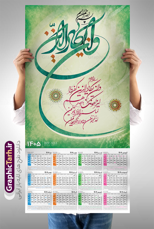 • این طرح دارای تصویر آیه شریفه و ان یکاد و جدول تقویم لایه باز سال 1405 است.