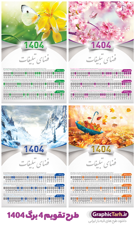 • تقویم سال 1404 بصورت 4 فایل که برای هر فصل است.