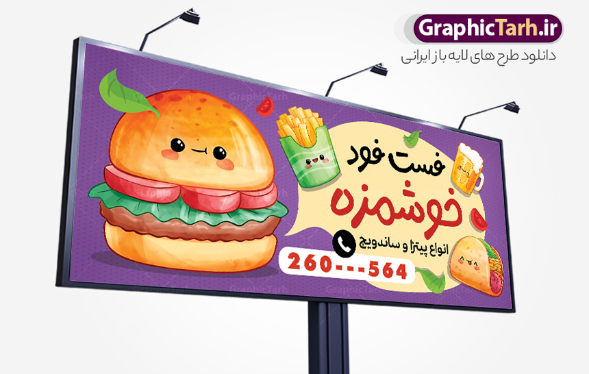 - شما می توانید با خرید اشتراک نمونه طرح بنر سردر ساندویچ و فلافل را بصورت رایگان دانلود کنید.