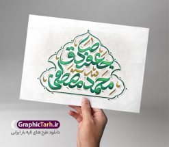 - خوشنویسی شهادت امام جعفر صادق بصورت کاملا لایه باز با فرمت PSD ، قابل ویرایش و تغییر سایز در نرم افزار فتوشاپ