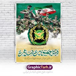- بنر افقی دکور روز ارتش در ابعاد 50 در 30 سانتی متر و با رزولوشن 300 با طراحی بسیار زیبا از سایت گرافیک طرح قابل دانلود می باشد.