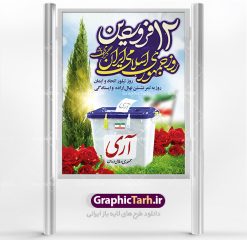 پوستر دوازدهم فروردین با تصویر صندوق رای و خوشنویسی تبریک این روز