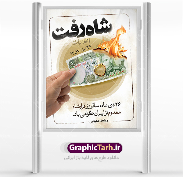 دانلود پلاکارد لایه باز 26 دی,سالروز فرار شاه,فایل بنر لایه باز فرار شاه,شاه رفت