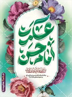 دانلود طرح لایه باز بنر تبریک ولادت امام حسن عسکری (ع) با پوستر تایپوگرافی حسن عسکری و قابلیت ویرایش