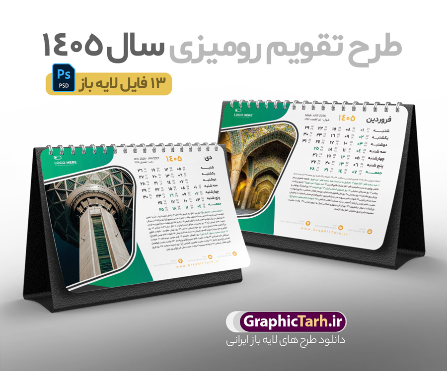 فایل خام تقویم رومیزی سال 1405 با عکس ایران