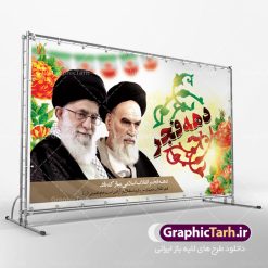 بنر آماده دهه فجر در ابعاد ۳ در 1 متر و بصورت افقی از سایت گرافیک طرح قابل دانلود می باشد.