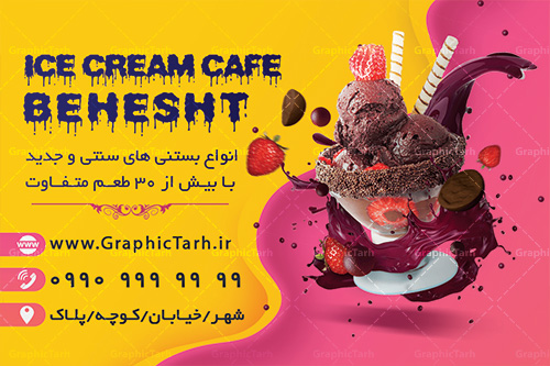 - طرح کارت ویزیت کافه بستنی با طراحی بسیار زیبا که از سایت گرافیک طرح قابل دانلود می باشد.