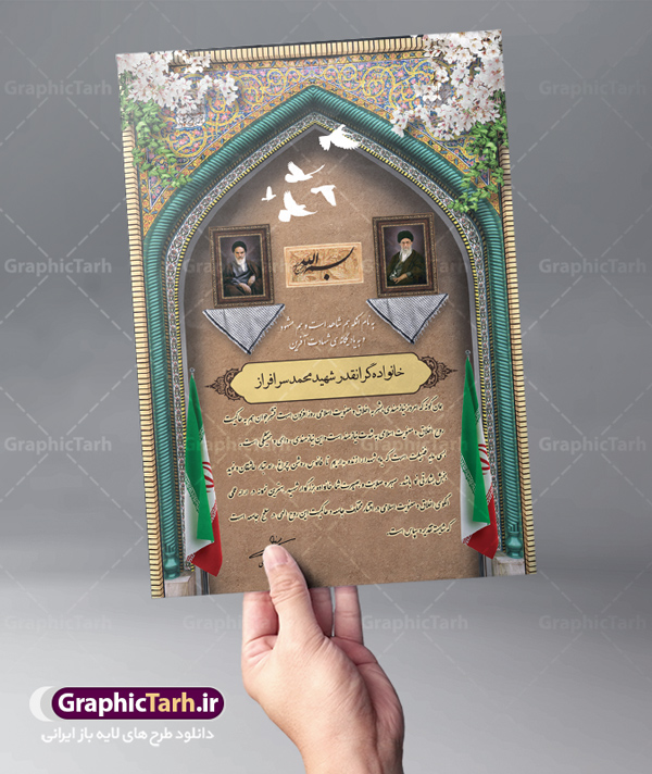 طرح لایه باز لوح تقدیر و لوح سپاس خانواده شهدا PSD