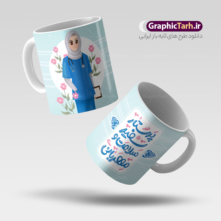نمونه فایل لایه باز طرح ماگ روز پرستار با خوشنویسی پرستار سفیر سلامت و مهربانی