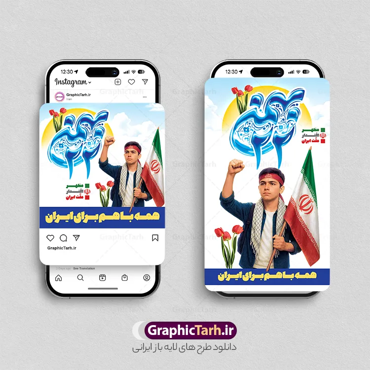 فایل طرح لایه باز قالب پست و استوری اینستاگرام دهه فجر و یوم الله 22 بهمن با تایپوگرافی