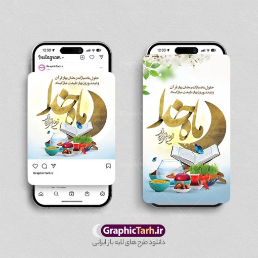 دانلود طرح لایه باز قالب پست اینستاگرام ماه مبارک رمضان و طرح استوری تبریک عید نوروز و سال نو