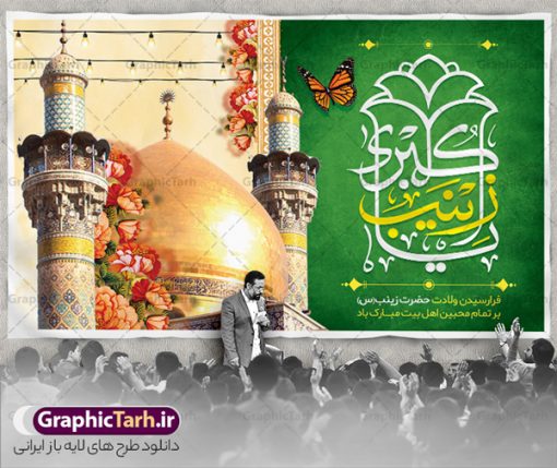فایل بنر جایگاه ولادت حضرت زینب کبری psd,طرح بنر پشت سن میلاد زینب کبری,طرح لایه باز بنر پشت سن میلاد حضرت زینب,طرح پوستر میلاد حضرت زینب,دانلود بنر میلاد حضرت زینب,طرح بنر اطلاعیه میلاد حضرت زینب