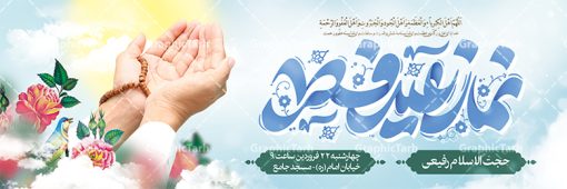 فایل بنر پلاکارد اطلاع رسانی مراسم اقامه نماز عید سعید فطر لایه باز و قابل ویرایش