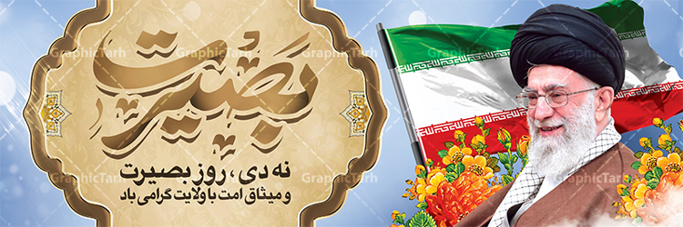 - طرح بنر دهه بصیرت بصورت کاملا لایه باز با فرمت PSD ،دارای تصویر دوربری رهبر انقلاب امام خامنه ای است.