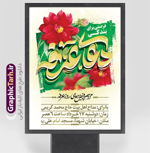 نمونه طرح اطلاعیه بنر مراسم دعای عرفه با تایپوگرافی لایه باز و قابل ویرایش