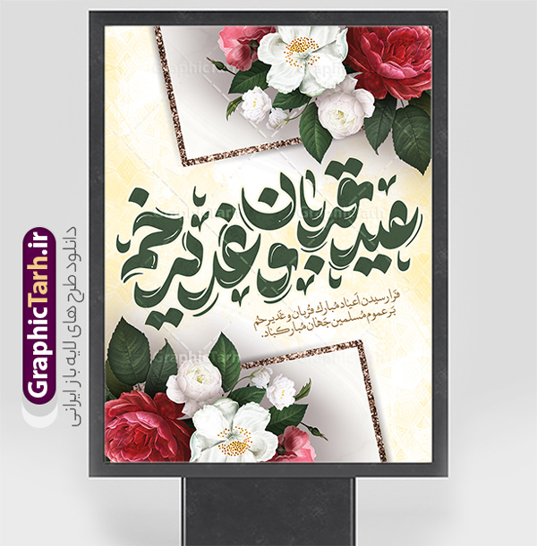 دانلود طرح لایه باز پوستر تبریک اعیاد قربان و عید غدیر خم با تایپوگرافی psd