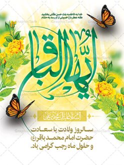 - طراحی بنر تبریک میلاد امام باقر بصورت کاملا لایه باز با فرمت PSD ، قابل ویرایش و تغییر سایز در نرم افزار فتوشاپ است.