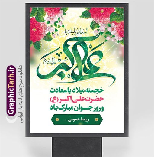 دانلود طرح لایه باز پوستر تبریک ولادت حضرت علی اکبر (ع) و بنر روز جوان با تایپوگرافی لایه باز و با قابلیت ویرایش