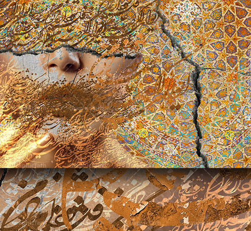طرح پوستر دیواری اسلیمی با تایپوگرافی و چهره