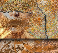 پوستر دیواری شعر نستعلیق با چهره زن و نقوش سنتی ایرانی