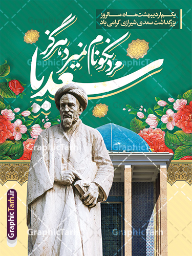 - فایل بنر بزرگداشت سعدی شیرازی مناسب برای روز اول اردیبهشت و بزرگداشت سعدی