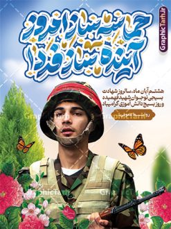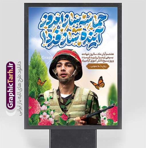 نمونه طرح پوستر لایه باز روز نوجوان و بسیج دانش آموزی با تایپوگرافی حماسه ساز امروز آینده ساز فردا psd