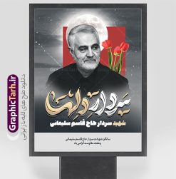 - طرح پوستر شهادت سردار دلها به صورت عمودی و مناسب برای نصب بر روی اسپیس فریم و…