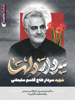 فایل پوستر سالگرد شهادت سردار سلیمانی با تایپوگرافی سردار دلها لایه باز و با قابلیت ویرایش