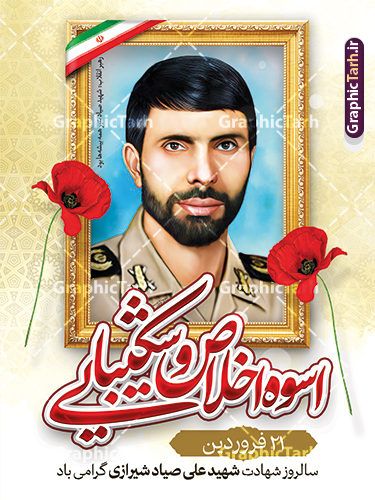 نمونه بنر سالگرد شهادت شهید علی صیاد شیرازی با فرمت psd و قابل ویرایش