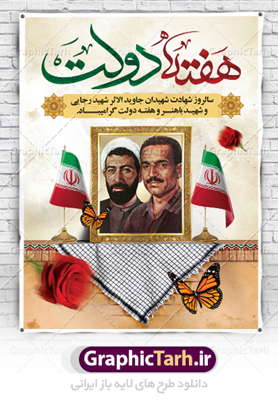 دانلود فایل طرح لایه باز بنر هفته دولت و پوستر 2 شهریور سالروز شهادت شهید رجایی و باهنر