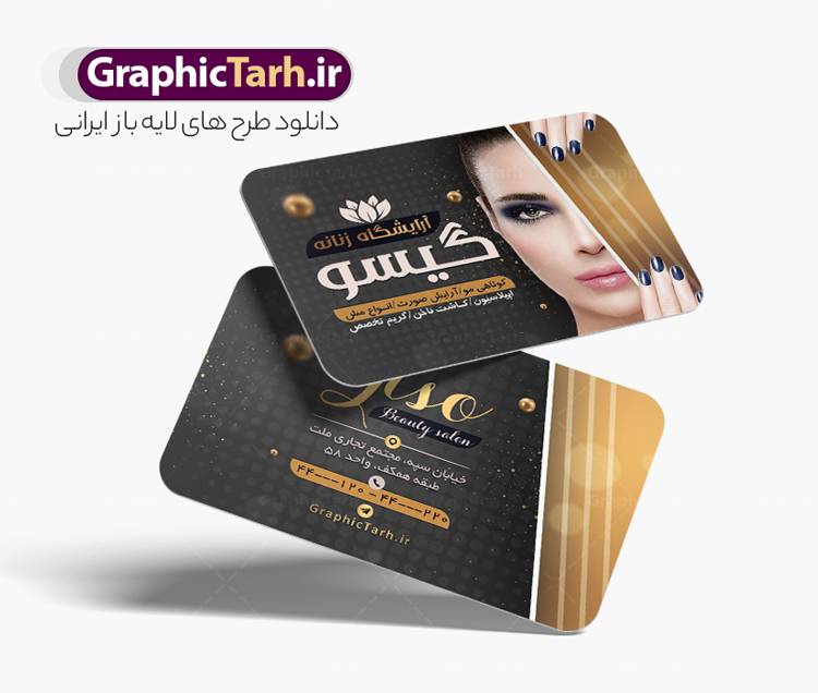 - همچنین کارت ویزیت لوازم آرایشی با طراحی بسیار زیبا از سایت گرافیک طرح قابل دانلود می باشد.