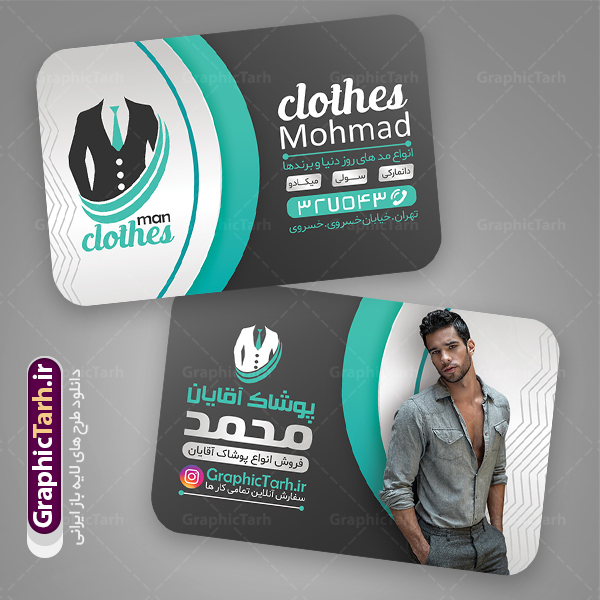 - شما می توانید با خرید اشتراک نمونه طرح کارت ویزیت لباس فروشی مردانه را بصورت رایگان دانلود کنید.