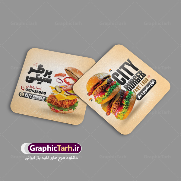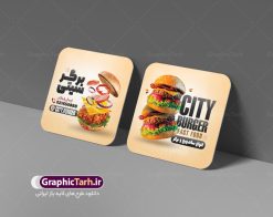 فایل نمونه طرح کارت ویزیت مربعی فست فود لایه باز psd