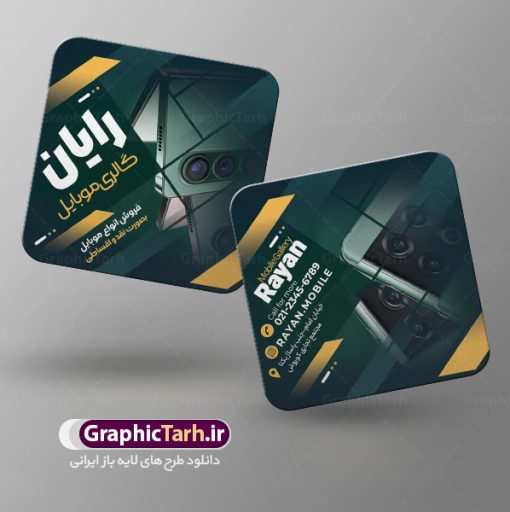 نمونه کارت ویزیت لایه باز موبایل فروشی مربعی دورگرد