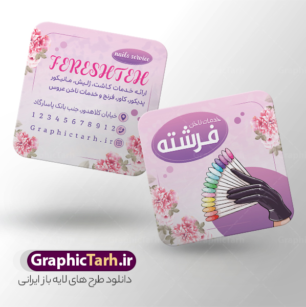 - فایل کارت ویزیت خدمات ناخن در ابعاد 6 در 9 سانتیمتر و با رزولوشن 300 از سایت گرافیک طرح قابل دانلود می باشد.