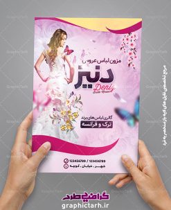 - تراکت تبلیغاتی مزون عروس ، برای تبلیغات مزون ، فروشگاه های عرضه پوشاک و البسه