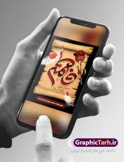 طرح پوستر شهادت حضرت فاطمه الزهرا به صورت عمودی و مناسب برای نصب بر روی اسپیس فریم و…